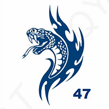 Ce modèle représente une tête de serpent style cobra, dressé prêt à frapper avec ses crocs. Il est entouré de formes tribales qui renforcent son agressivité.